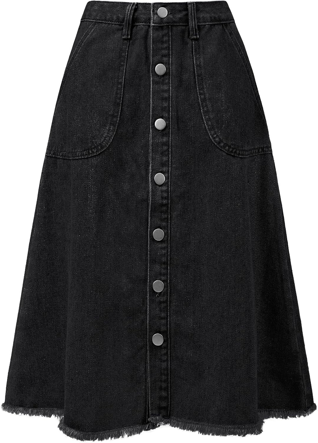 Allegra K Women's Denim Skirts Raw Hem Button Down Midi Jeans Skirt