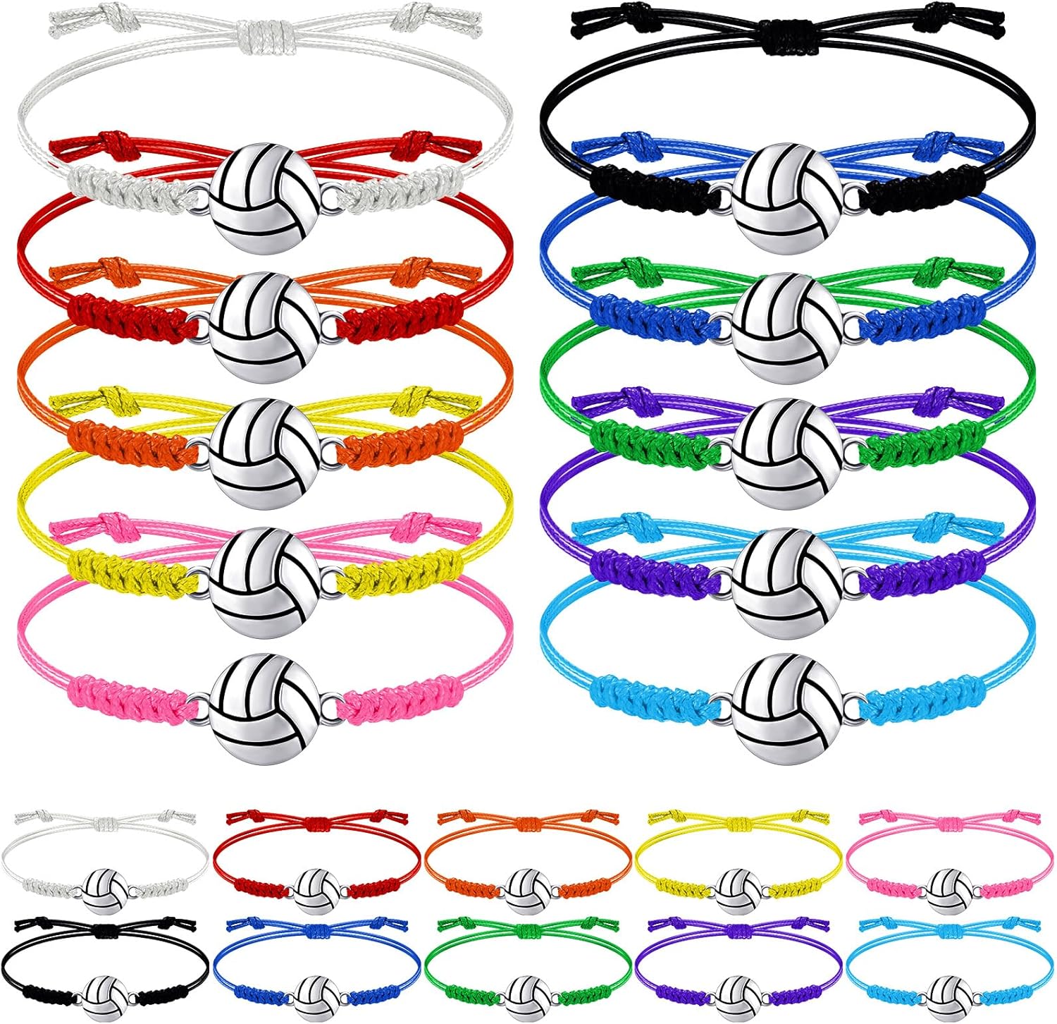 Jadive 20 Pieces Volleyball Charm Bracelets Bulk Volleyball Team Gifts Adjustable Christmas Sport Jewelry for Women Men Coach Decorations