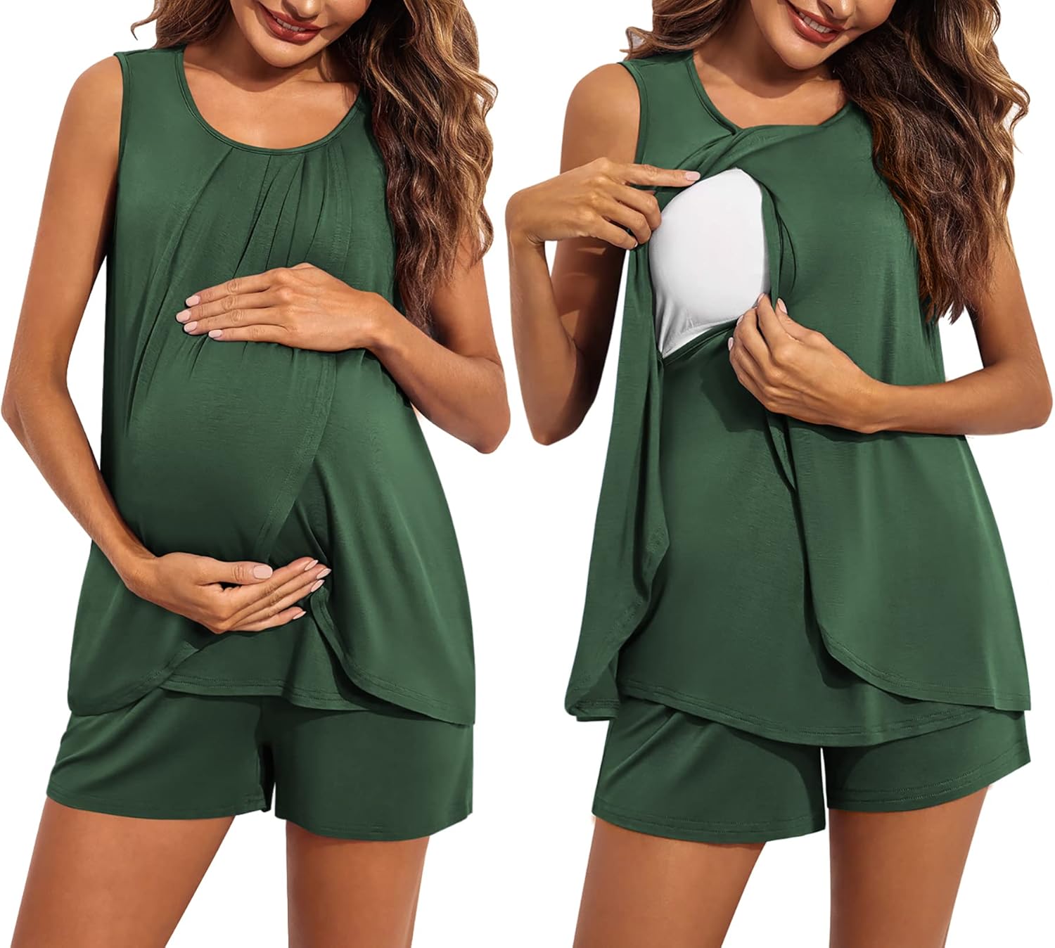 Ekouaer Women Maternity Nursing Pajama Set Breastfeeding Sleepwear Double Layer Sleeveless Top & Shorts Pregnancy PJS
