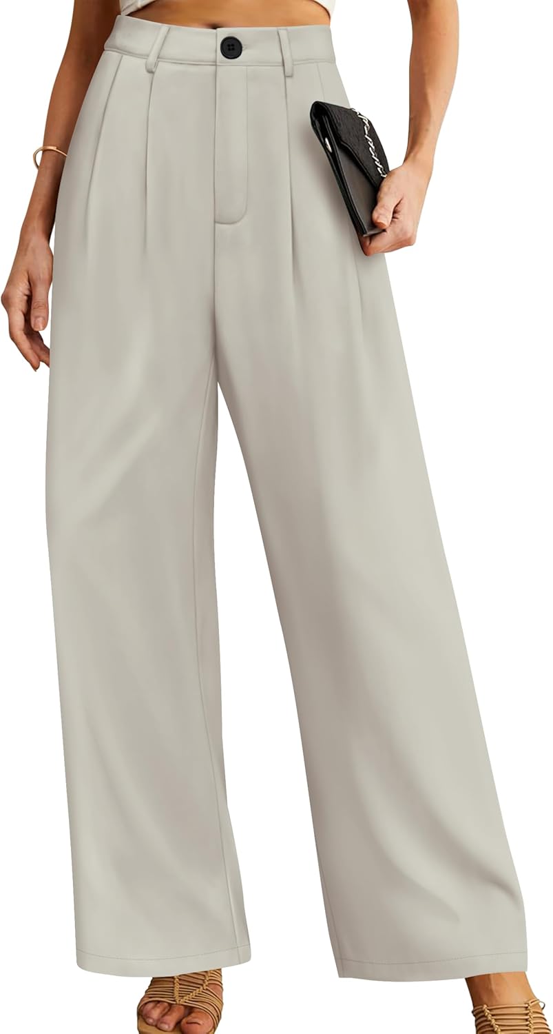 Wide Leg Pants for Women Business Casual Palazzo Pant High Waisted Dressy Flowy Work Office Trousers with Pockets