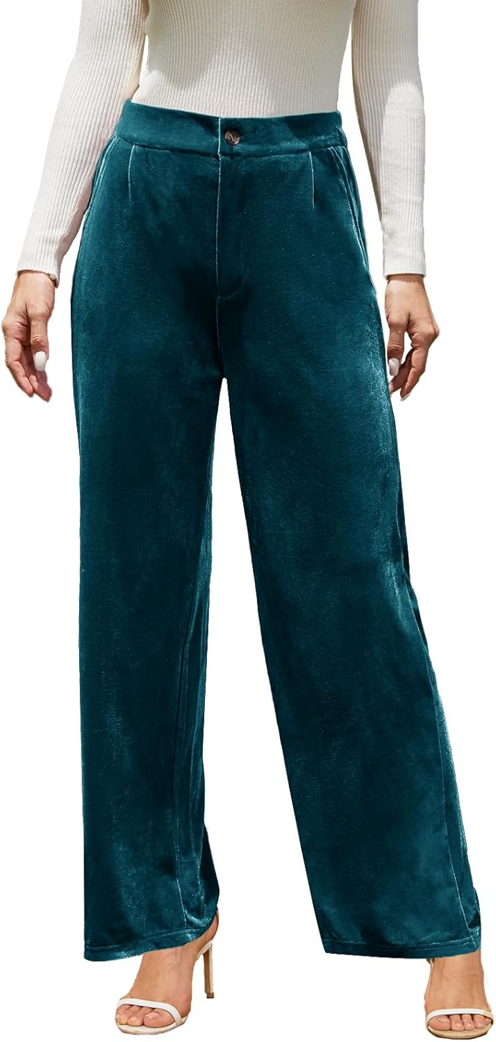 Velvet Pants for Women Dressy Women Casual Wide Leg Pants Stretchy High Waisted Velour Palazzo Pants