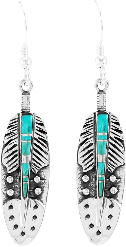 925 Sterling Silver Feather Earrings in Genuine Gemstones & Gemstones