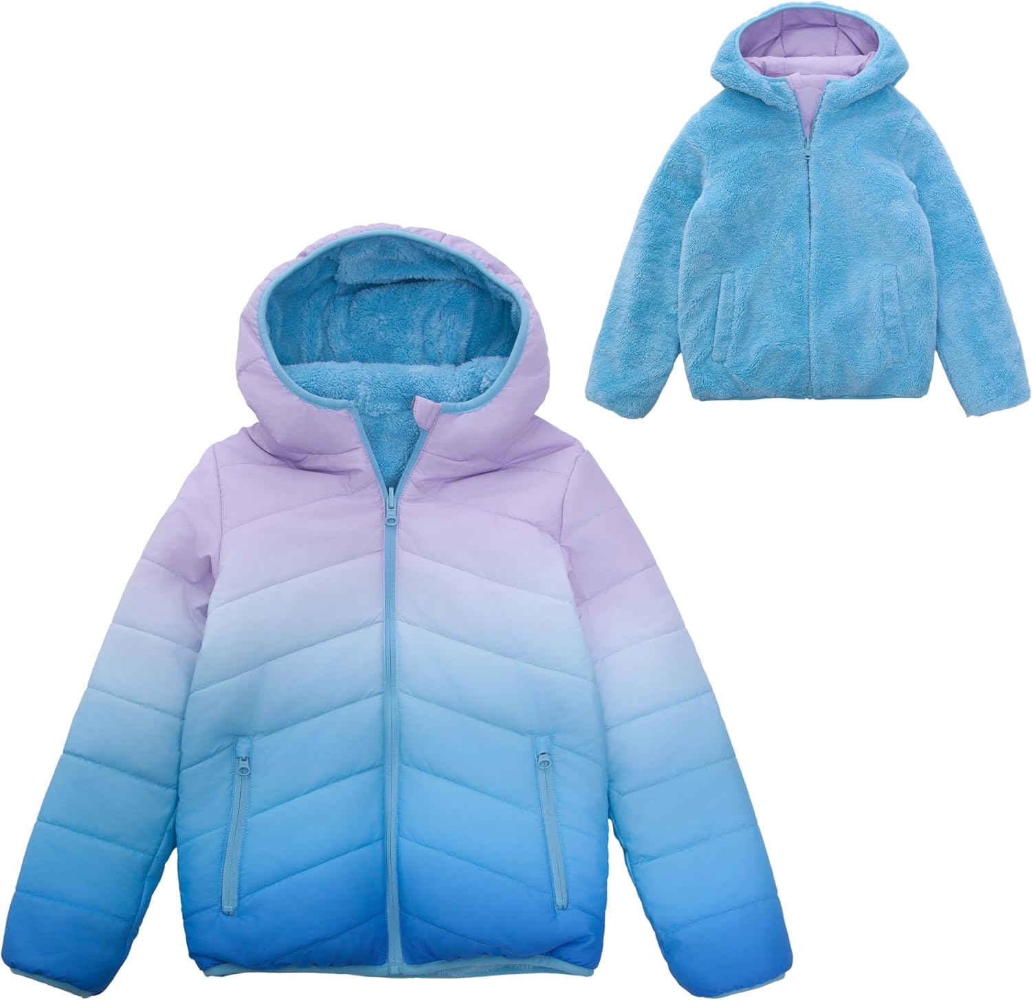 Rokka&Rolla Girls' 2-in-1 Reversible Water-Resistant Sherpa Fleece Puffer Jacket