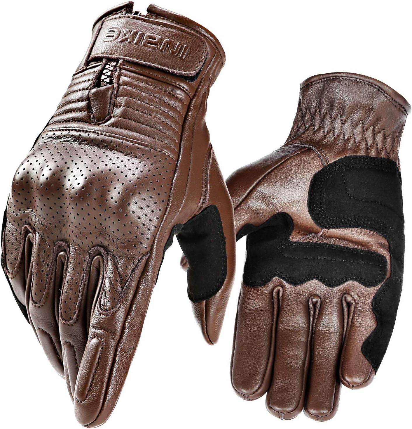 INBIKE Motorcycle Gloves for Men Premium Genuine Perforated Leather Breathable Motorbike Riding Gloves Touchscreen with Hard Knuckle