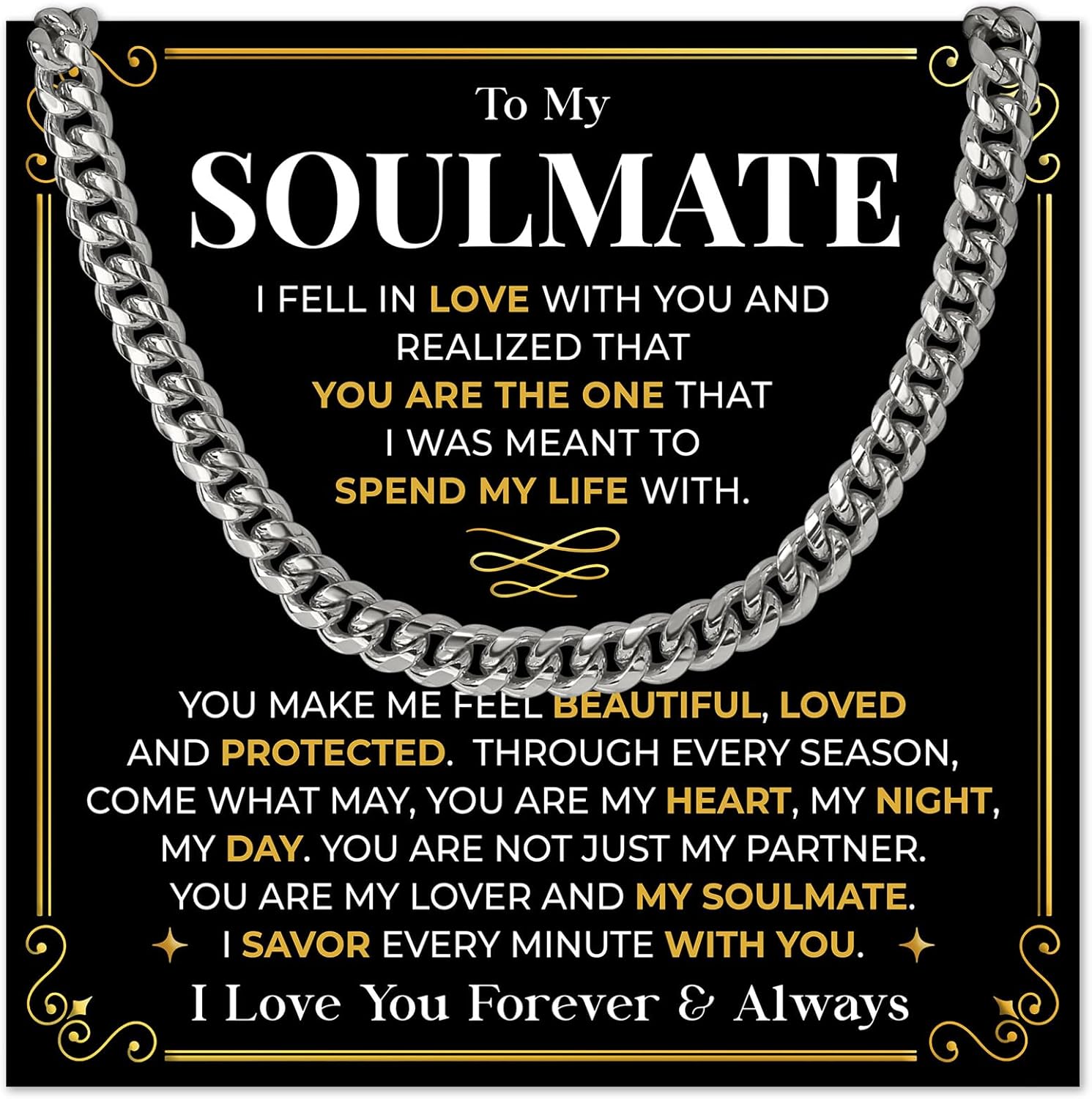 To My Soulmate Necklace for Him, Meaningful Romantic Jewelry Gift for Couple, Anniversary, Valentine’s Day, Birthday, Christmas, Forever & Always Keepsake for Boyfriend