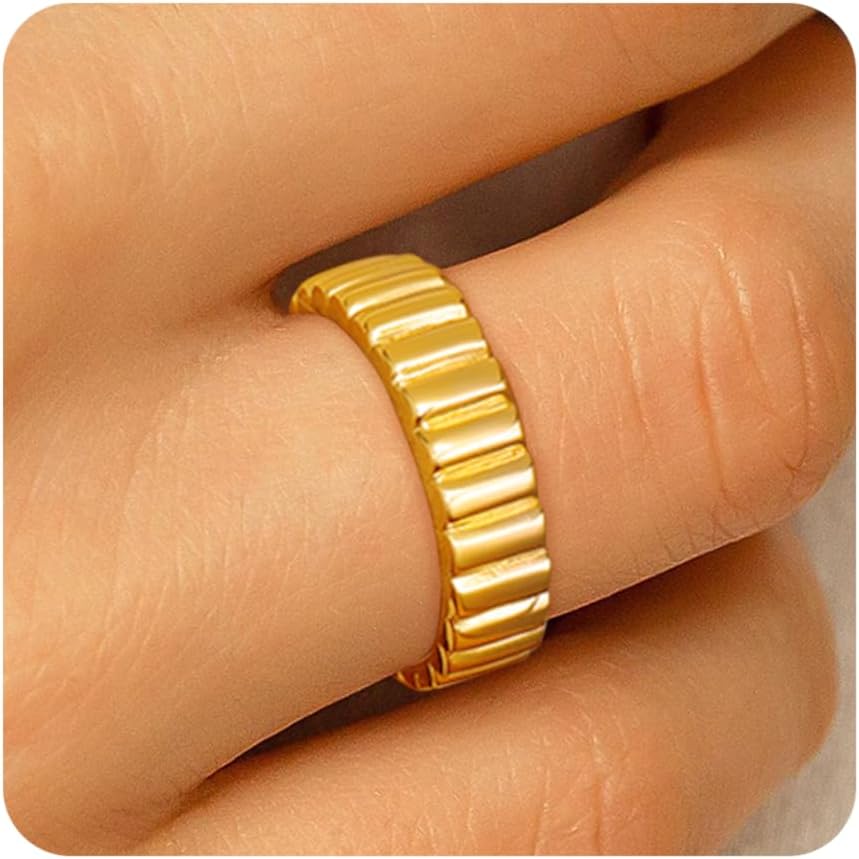 Gold Rings for Women, Non Tarnish 14K Gold Plated Stackable Finger Ring, Chunky Statement Ring Band CZ Pinky Ring Fashion Accessories Jewelry Birthday Gifts for Her