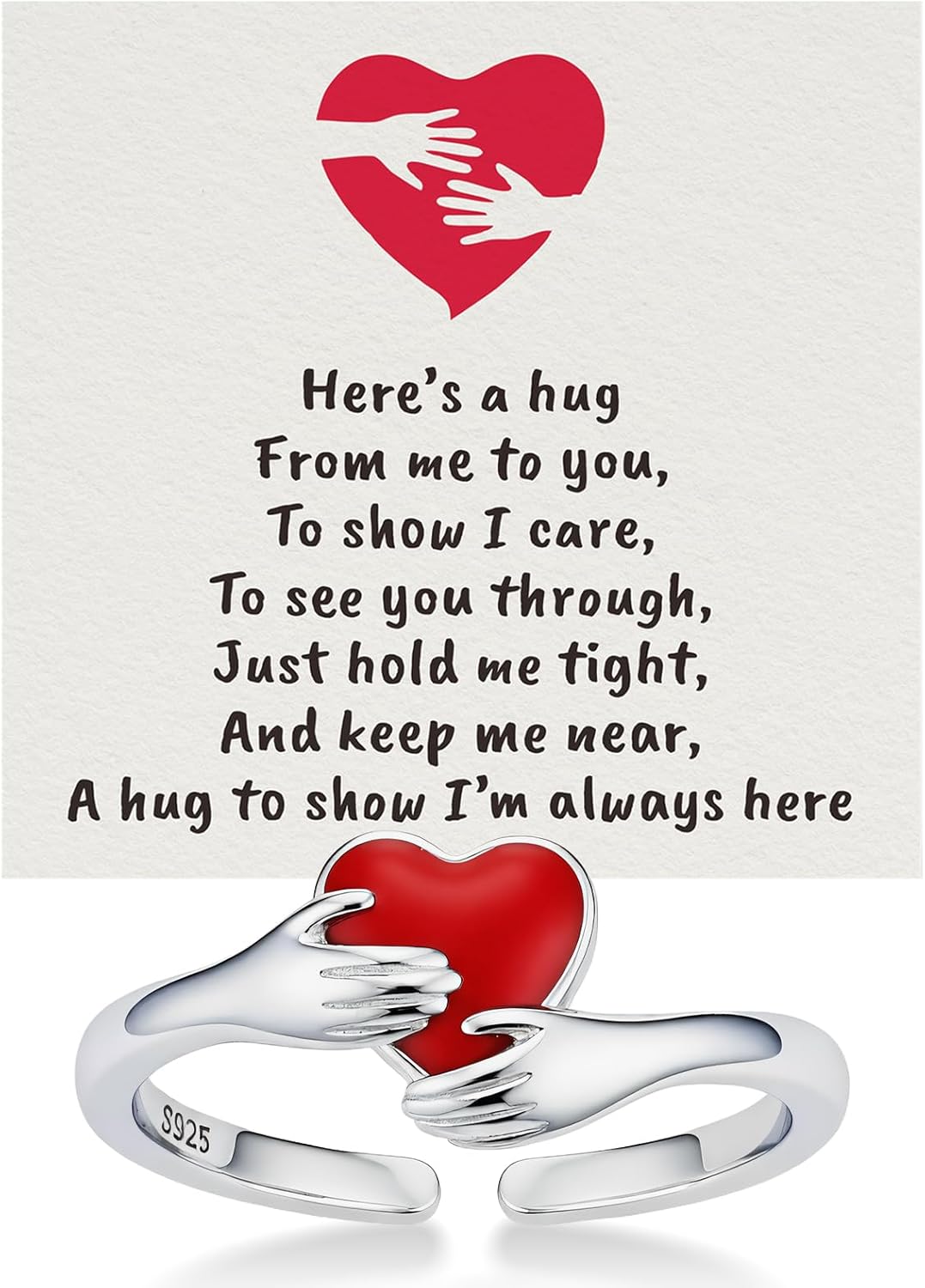 Hug Ring for Granddaughter, S925 Sterling Silver Adjustable Red Heart Hope Rings Jewelry Gifts to Women Daughter Sister Grandma