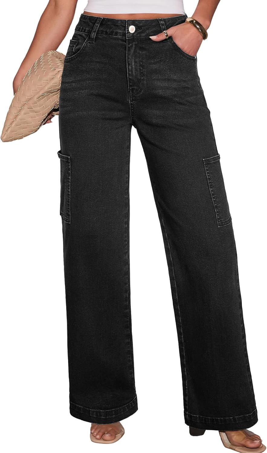 Sidefeel Straight Leg Jeans for Women High Waisted Baggy Pants Loose Stretchy Wide Leg Cargo Jeans