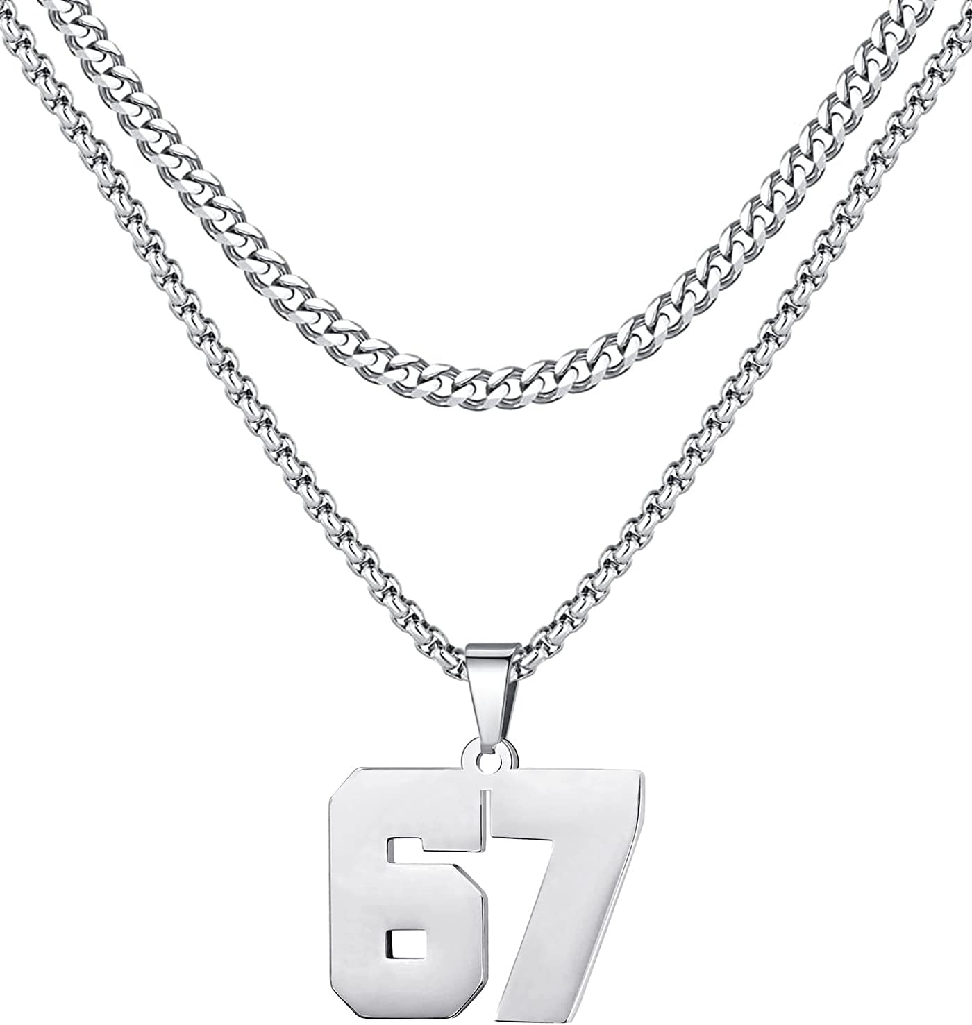Personalized Jersey Number Layered Necklaces for Men Stainless Steel Athletes Sports Number Chain for Men Baseball Basketball Football Gifts