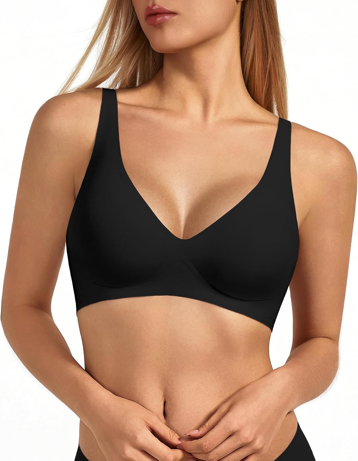 Women's Wireless Soft Jelly Push Up Bra with Deep V Plunge & Light Support, No Underwire Comfort Everyday Bralette