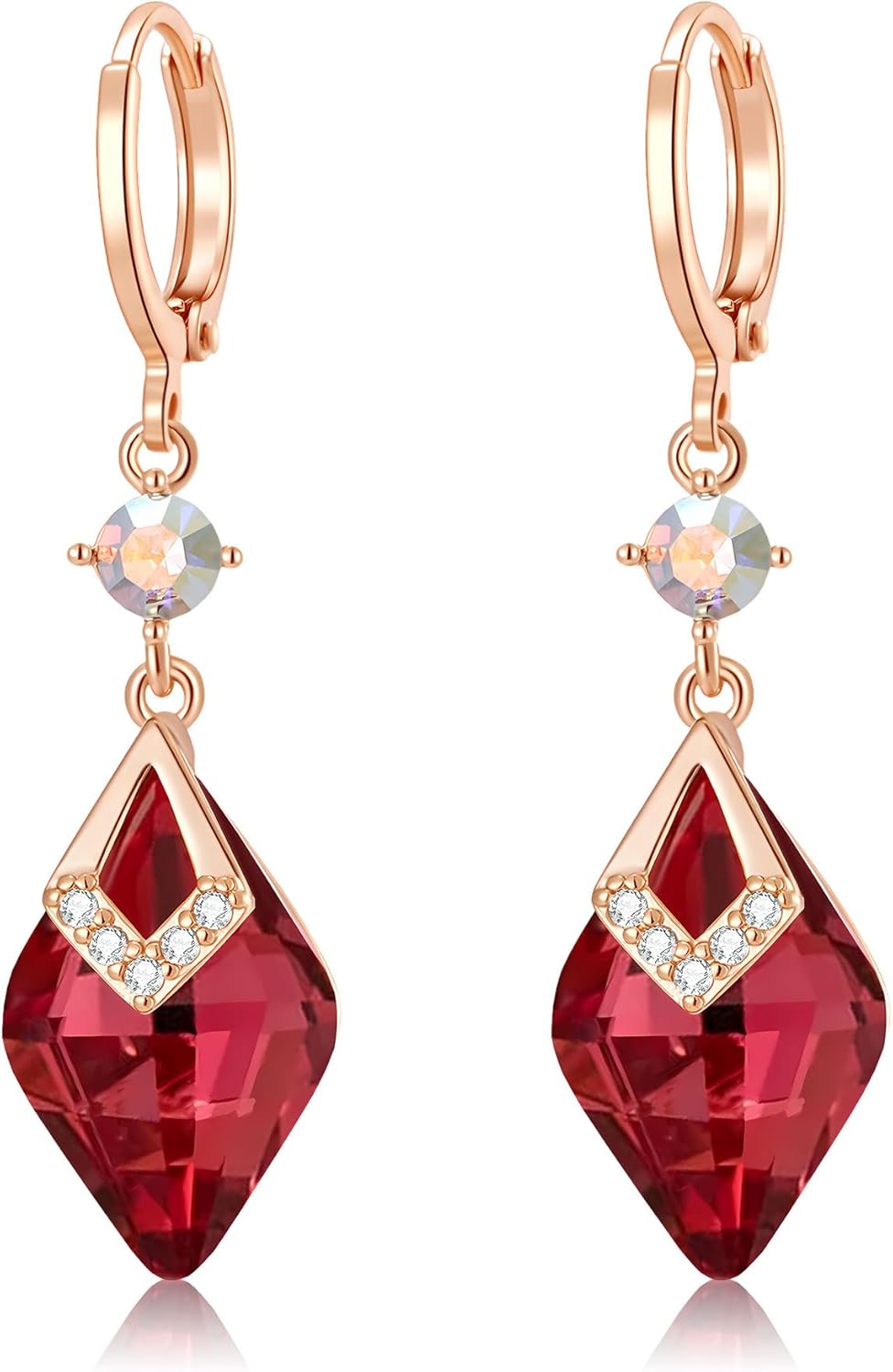 Trendy Austrian Crystal Rhombus Drop Huggie Dangle Earrings for Women 14k Rose Gold Plated Hypoallergenic Jewelry Gifts