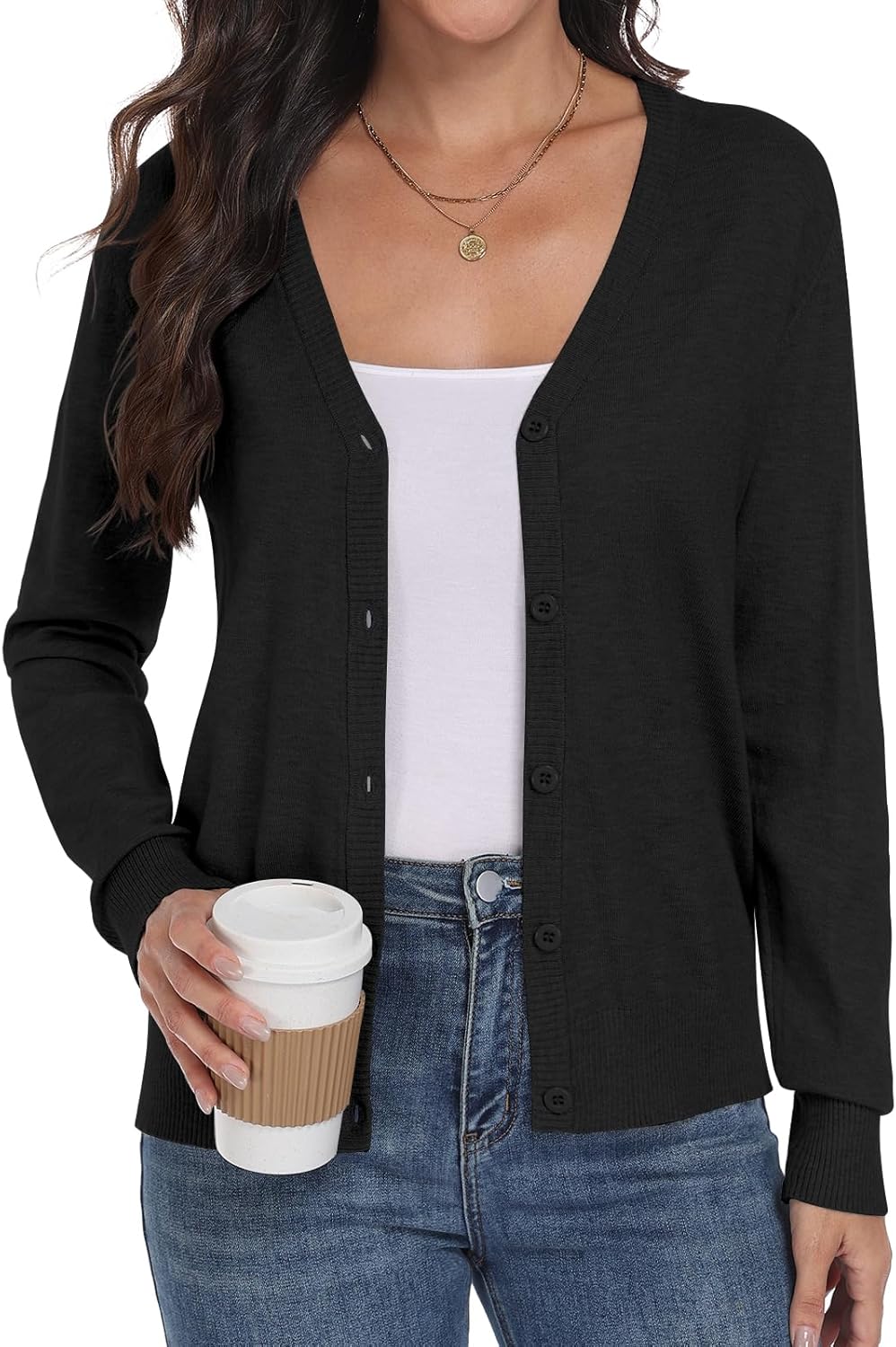 Yincro Womens Cardigan Lightweight Button Down Long Sleeve Knit V-Neck Soft Basic Cardigans Sweater