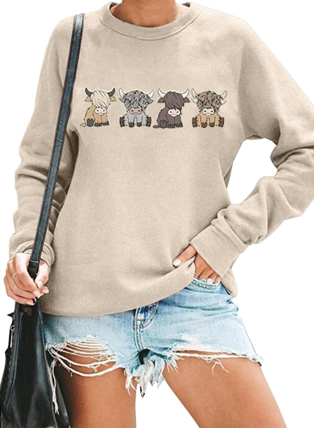 Women Cow Sweatshirt Funny Animal Graphic Long Sleeve Top Farm Life Pullover Western Cowgirl Casual Shirts