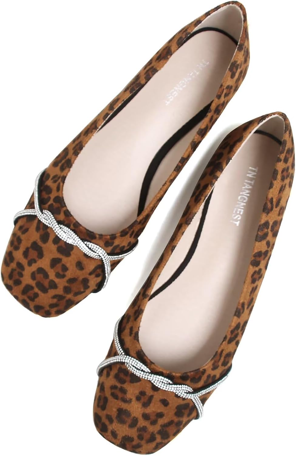 TN TANGNEST Womens Casual Flats Fashion Chain Square Toe Ballet Flats Rhinestone Flats Comfort Slip On Dress Shoes Leopard Brown 40(8)