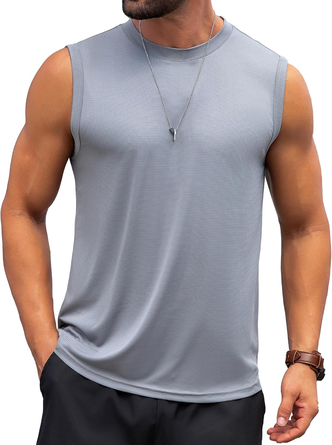 KAWATA Men's Tank Top Sleeveless Tee Muscle Workout Gym Shirts Lightweight Athletic Running Bodybuilding Shirt