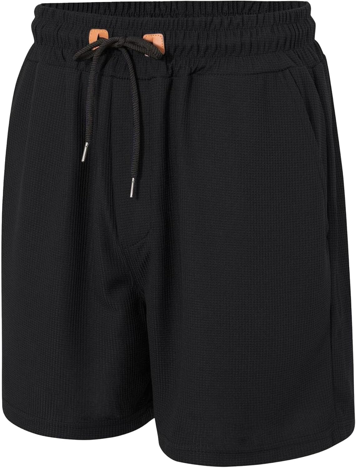 Men's Waffle Shorts Casual Elastic Waist Drawstring Lightweight Loose Fit Beach Shorts 5" with Pockets