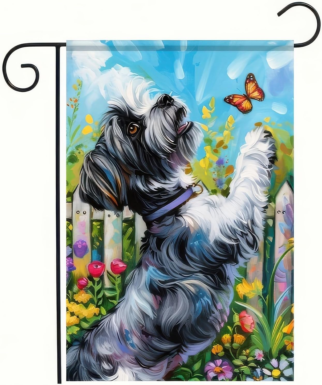 Spring Summer Garden Flag Schnauzer Dog 12x18 Inch Double Sided Yard Flags Cute Dog Puppy Outdoor Decorative for Spring Summer Yard Porch Farmhouse Outside Decor