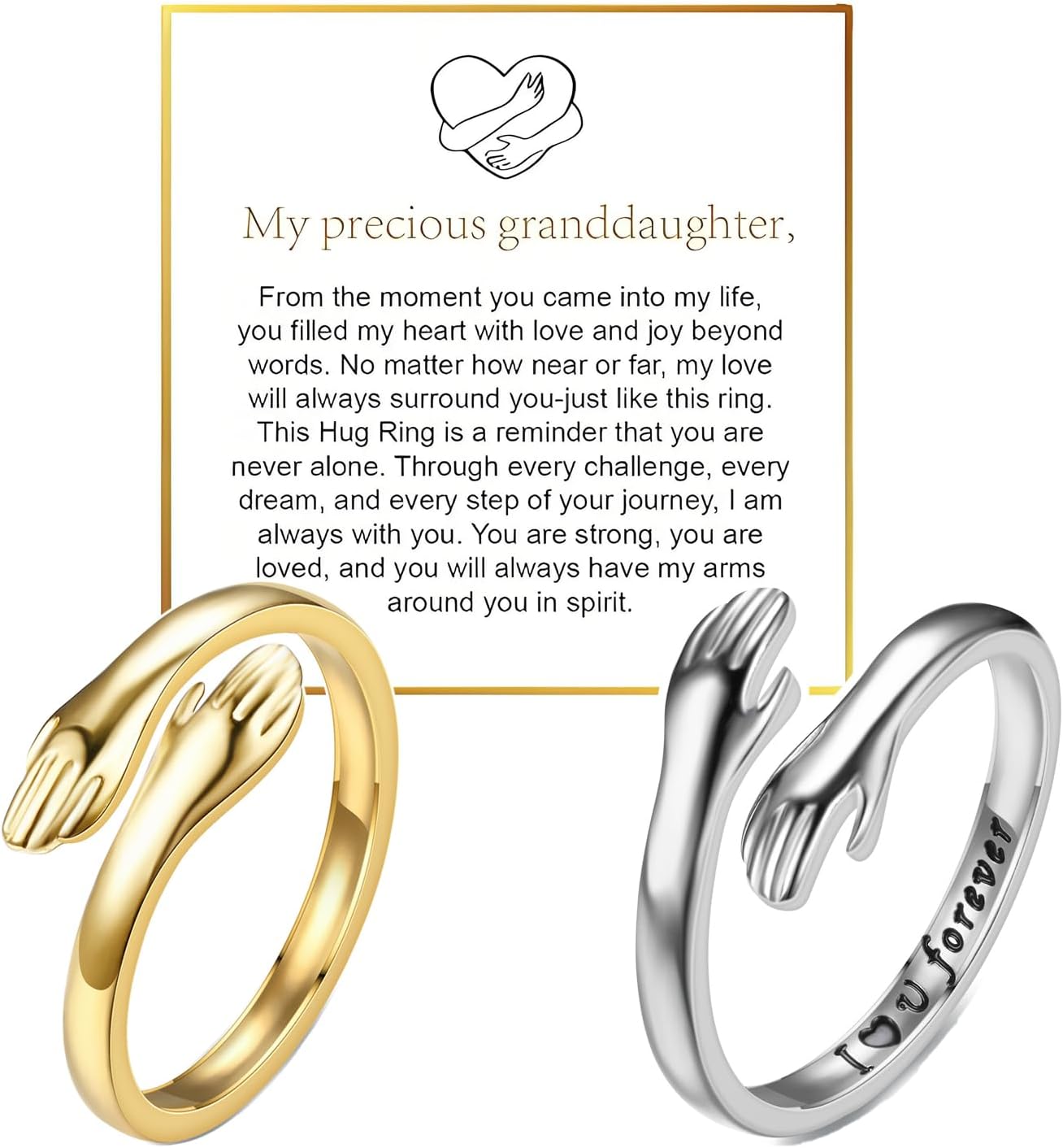 To My Granddaughter Hug Ring, Hope Rings Inspirational Stainless Steel Engarved With “Always With You” Message Adjustable Ring for Women Non Tarnish Jewelry Gift for Her Birthday Christmas