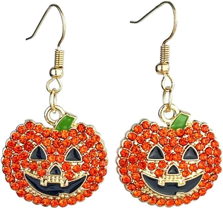 Shiny Rhinestone Ghost Pumpkin Drop Dangle Earrings Crystal All Saints' Day Spooky Earrings Halloween Party Jewelry Gifts for Women