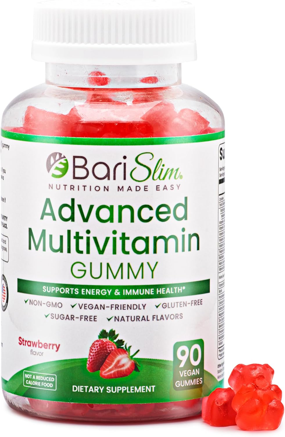 BariSlim Advanced Bariatric Multivitamin Gummies - Specially Formulated Bariatric Vitamins for Patients After Weight Loss Surgery - Supports Energy & Immune Health | Strawberry (90 Vegan Gummies)