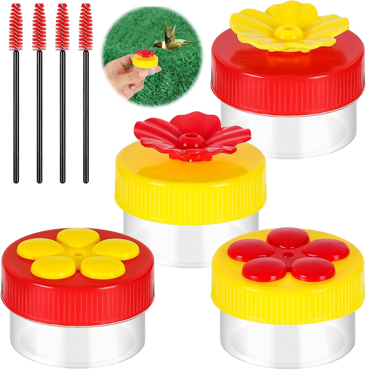 - Comes with Cleaning Brushes: The set includes 4 handheld hummingbird feeders in red and yellow, colors that easily attract hummingbirds. It also comes with 4 cleaning brushes for thorough cleaning, ensuring the feeders stay clean to attract hummingbirds.