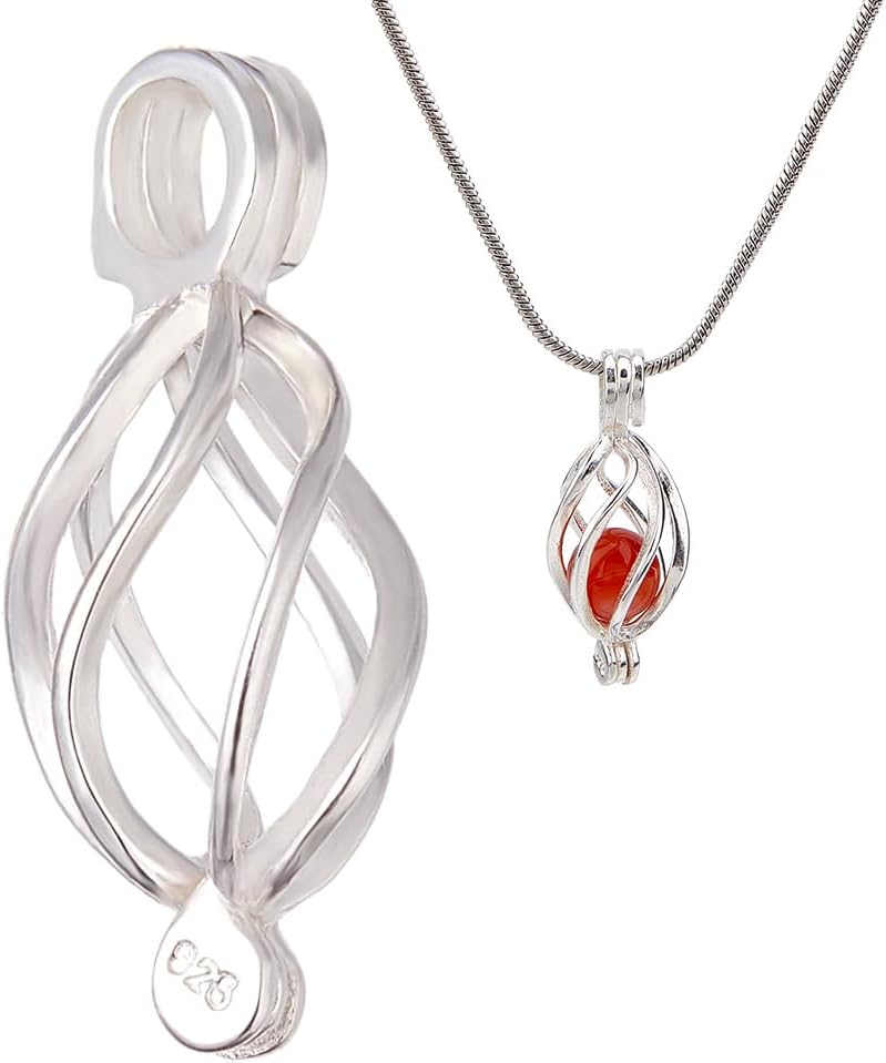 1pc 925 Sterling Silver Cage Charm Silver Water Drop Bead Cage Pendants Oval Hollow Big Cages Charms Bead Locket Pendants for Women Pearl Necklace Jewelry Making