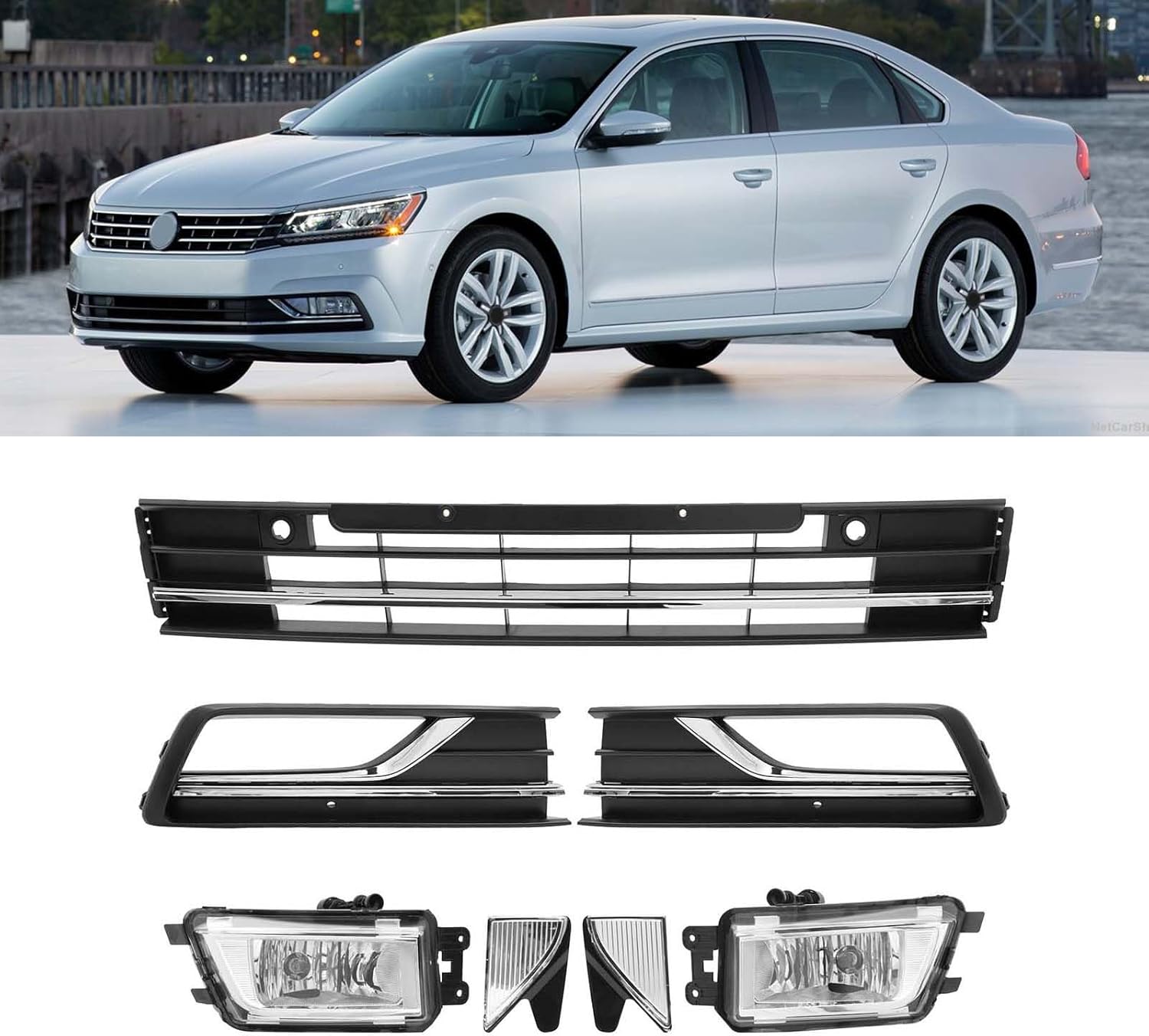 Lower Grille Fit for Volkswagen Passat 2016 2017 2018 2019 with Fog Light and Fog Lamp Bezel