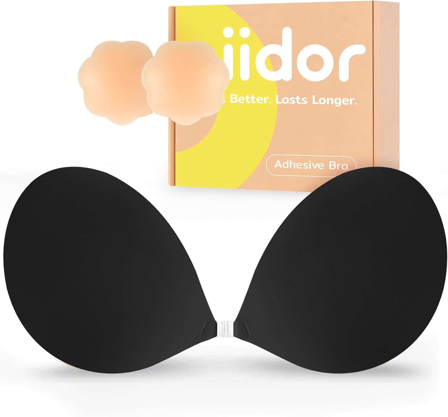 Niidor Adhesive Bra Strapless Ultra Sticky Invisible Push up Silicone Bra Multiple Colors Sizes Reusable for Backless Dress