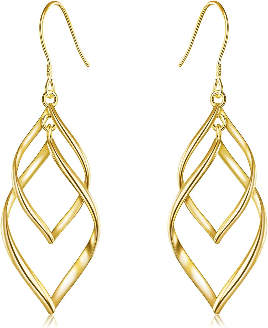 Sterling Silver Dangle Earrings for Women, 14k Gold Plated Double Linear Drop Statement Earrings Anniversary Birthday Gifts for Women