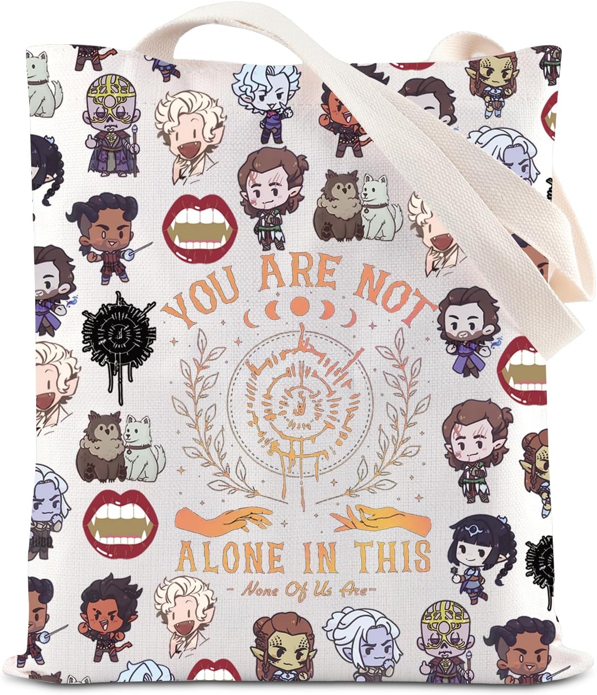 KUIYAI BG3 Inspired Tote Bag Astarion Lover High Elf Gaming Gift Astarion Rogue Gift You Are Not Alone In This Canvas Bag For Gamer (AloneInThisTS-US)