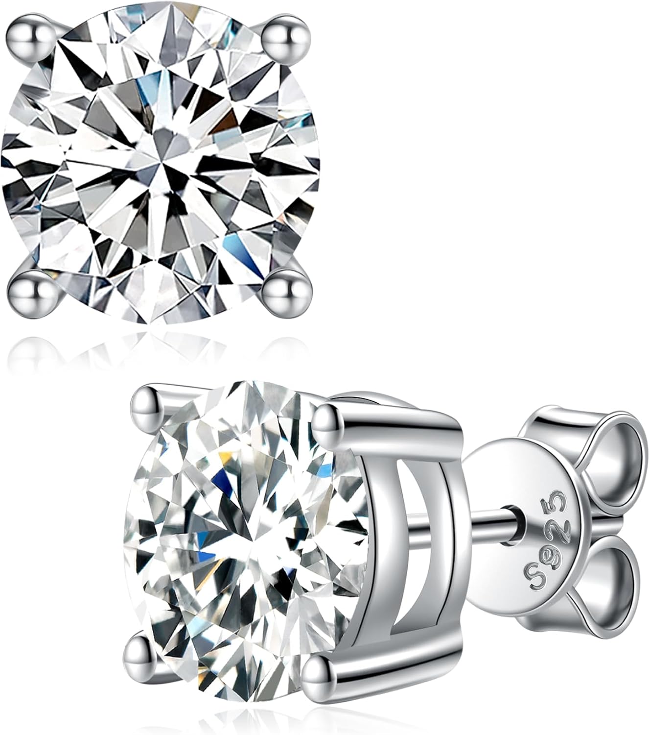2-4ct Moissanite Stud Earrings for Women - D Color VVS1 Clarity Solid 925 Sterling Silver 18K White Gold Plated Jewelry - Lab Created Diamond Mens Gifts