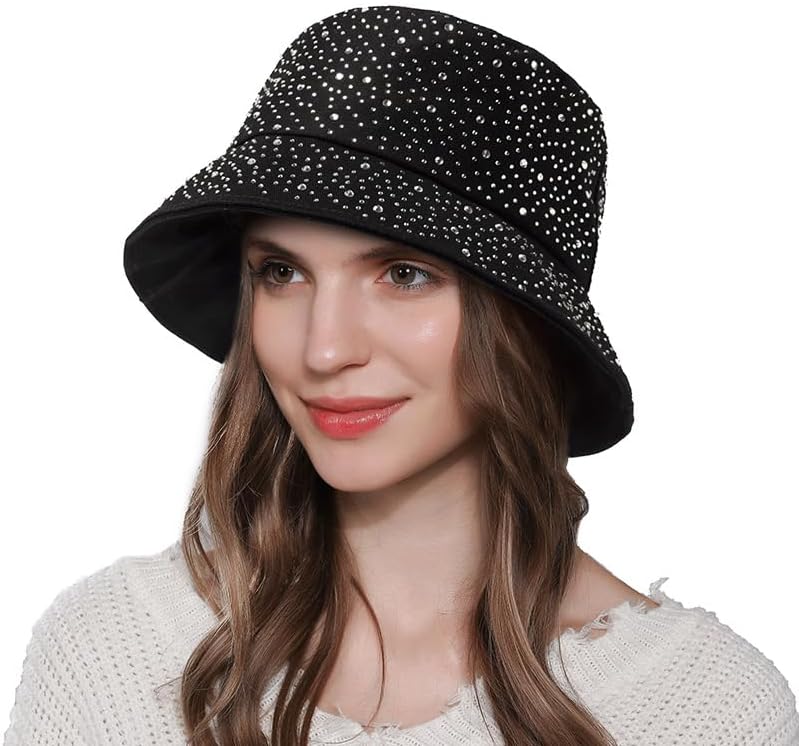 MILAKOO Shiny Glitter Bucket Hat Squin Rhinestone Bling Sparkly Retro Party Cap for Men Women