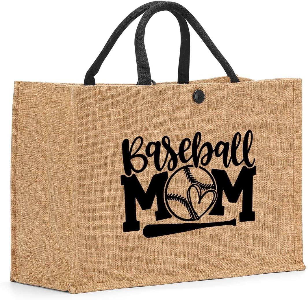 Funny Wine Lovers Boss Lady Teacher Pregnancy Baseball Mom Gifts Burlap Tote Bag for Women Lady