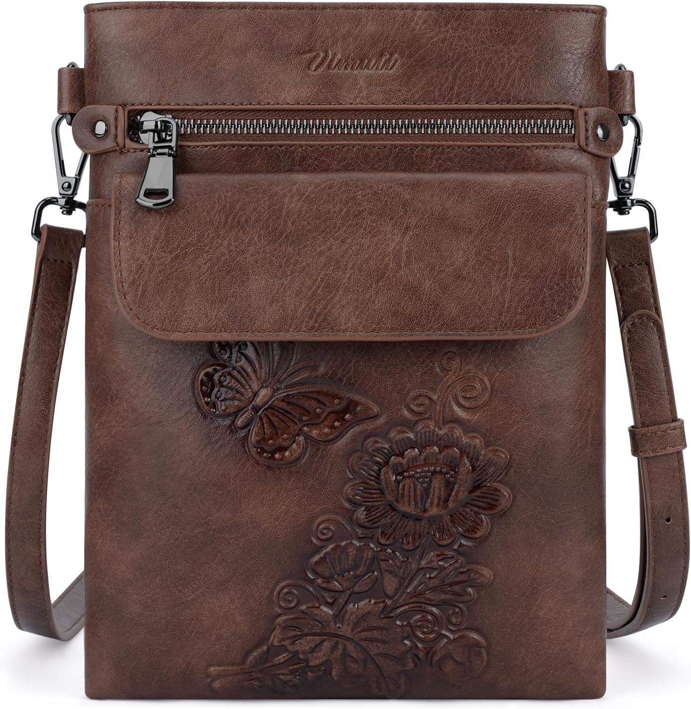 Small Crossbody Purse for Women, Vegan Leather Multi Pocket Bag with Adjustable Strap Embossed Travel Shoulder Bag