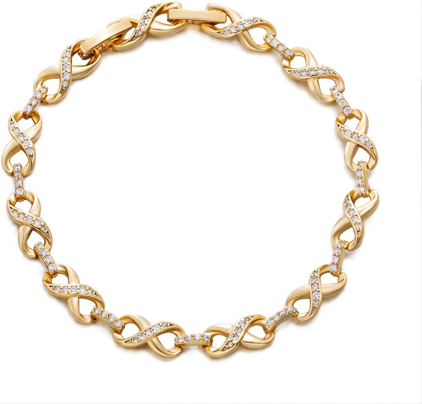 XUPING Gold Infinity Bracelet for Women 14k Gold Plated Tennis Bracelet Cubic Zirconia Rhinestone Dainty Jewelry Gift