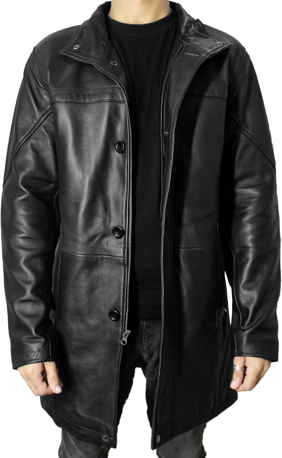 Leather Car Coat For Men 3/4 Length Mens Trench Coat - Real Lambskin Long Jacket For Men
