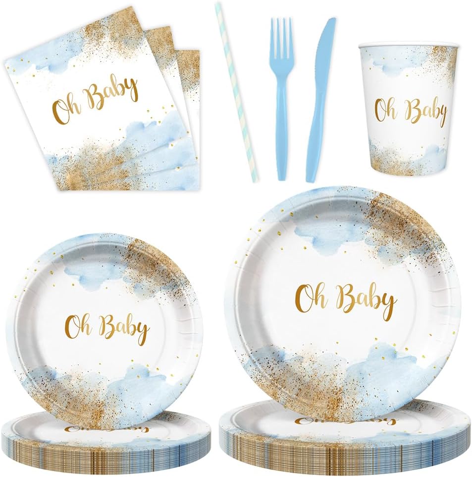 - Free From Cleaning: Our blue baby shower party disposable dinnerware set reduces clean-up time and allows you to enjoy more time with friends and family at your party. When the party finished, what you only need to do is to collect all the rubbish and throw it directly into the rubbish bin. Free yourself from the burden of dishwashing