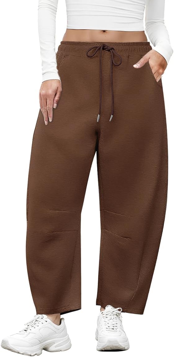 CARCOS Plus Size Pants for Women Barrel Sweatpants Baggy Wide Leg Lounge Drawstring Casual Palazoo with Pockets XL-5XL