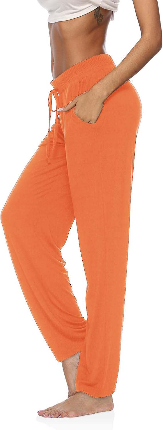 DIBAOLONG Womens Yoga Pants Wide Leg Comfy Drawstring Loose Straight Lounge Running Workout Legging Orange 2XL