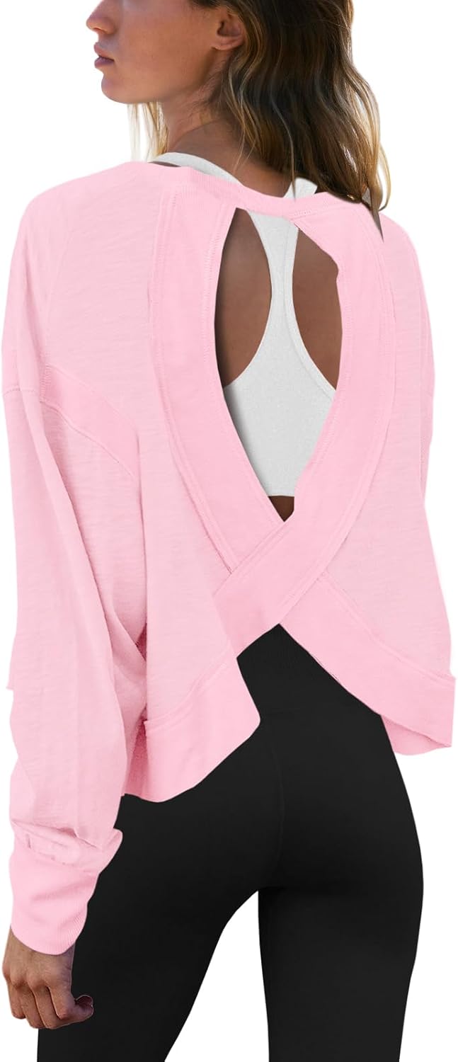 Panadila Womens Open Back Workout Top Long Sleeve Athletic Shirts Casual Crop Running Tee Y2k Yoga