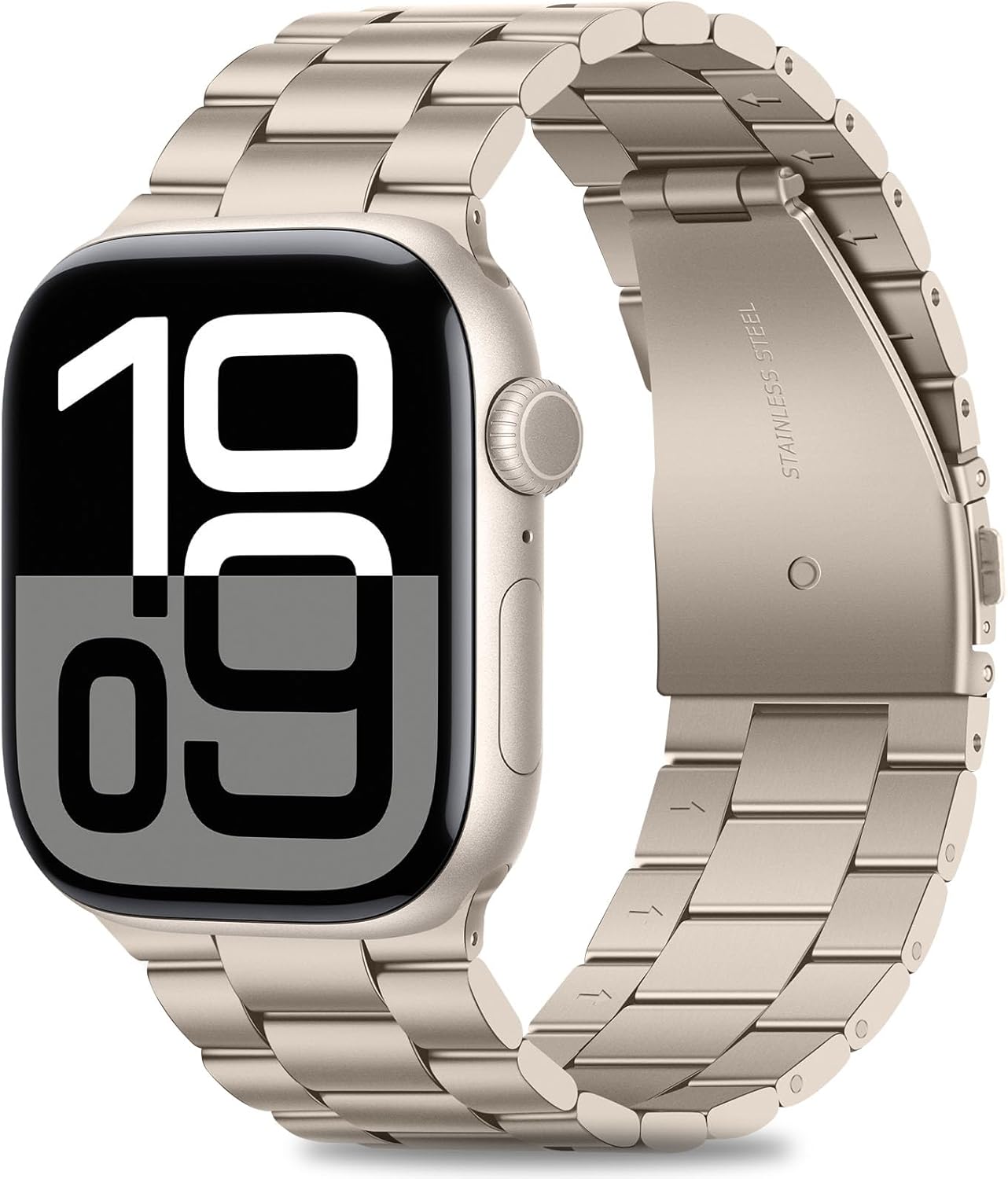 HITZEE Compatible with Apple Watch Band 46/45/44/42mm Business Stainless Steel Metal Strap Men Women Link Bands Compatible for iWatch SE3-1 Series 11 10 9 8 7 6 5-1, 42/44/45/46mm Starlight
