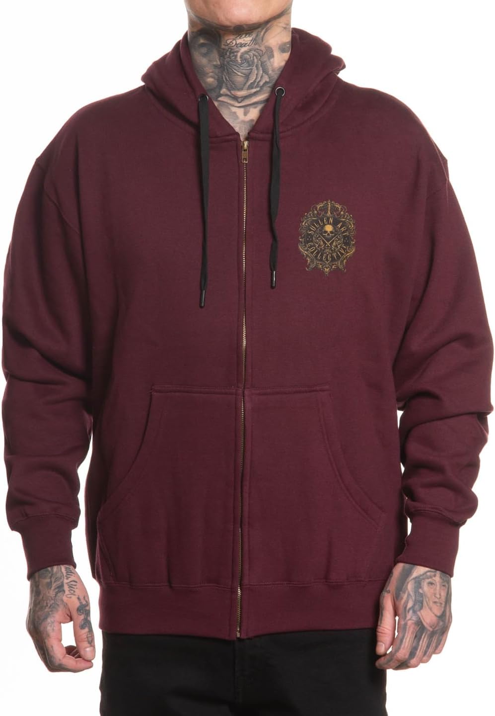 Sullen Men's Filigree Badge Tattoo Lifestyle Graphic Long Sleeve Zip Up Hooded Fleece Sweatshirt Burgundy