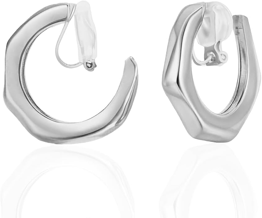 FAN&LOUIS Gold Hoop Clip On Earrings for Women, 24K Gold Plated Trendy Small Hoop Hypoallergenic Dainty Non Pierced Earrings Painless Lightweight Clip-On