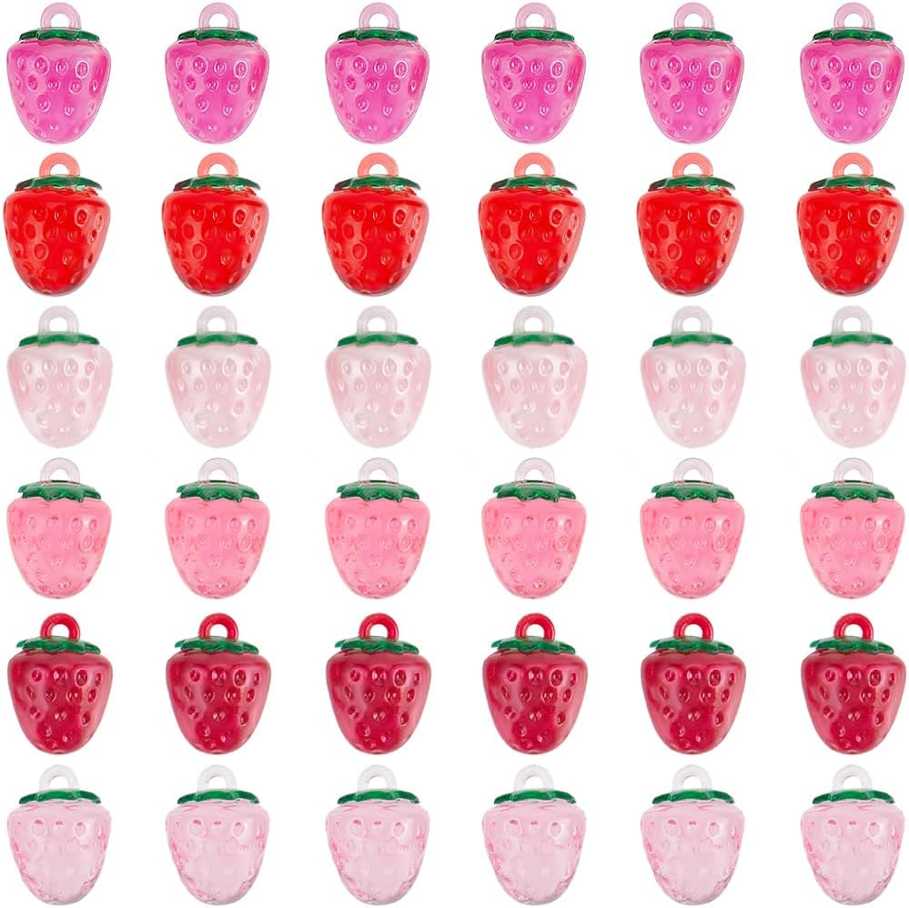 SUNNYCLUE 1 Box 36Pcs Strawberries Charm Resin Strawberry Charms Ornament Artistry Colorful Small Strawberry Fruit Charms for Jewelry Making Charms Supplies Craft Necklace Bracelet Crafting Women