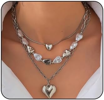 Gold Chunky Heart Pendant Necklace for Women Baroque Pearl Statement Choker Necklaces Layered Stackable Love Necklaces Dainty Trendy Jewelry Accessories