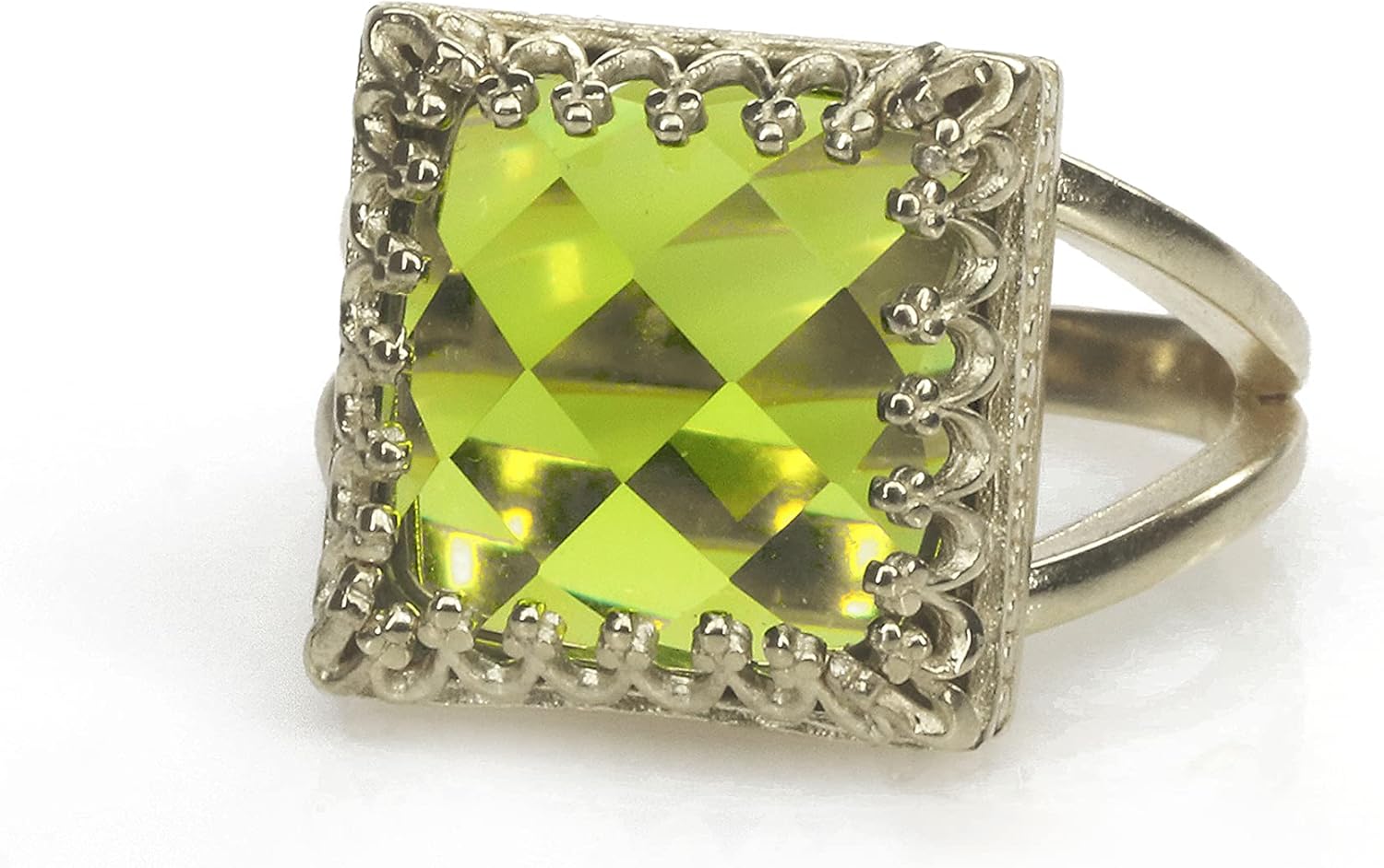 Bright Peridot Ring in 925 Silver - Artisan Jewelry Ring for Fashion, Engagement, Wedding for Her - Choose Your Size and Material - with Fancy Jewelry Box