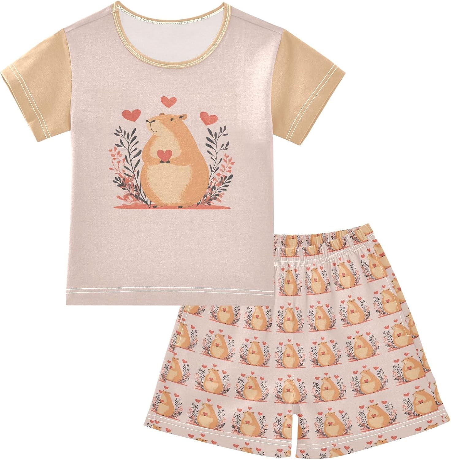 senya Cute Highland Cows Summer Pajamas Set Short Cotton Sleepwear 2 Piece