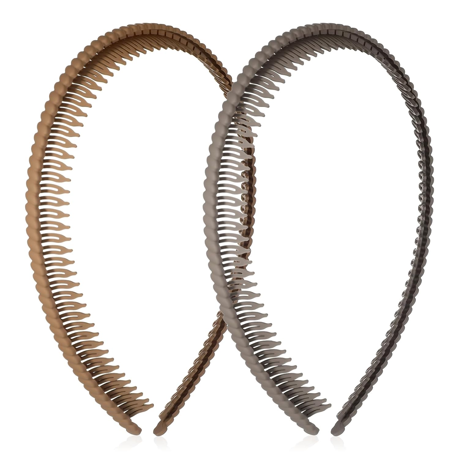 2 Pcs Headbands with Teeth for Women Non Slip, Plastic Comb Headband with Teeth, Fashion Comfortable Hairbands Hair Accessories for Women Girls(Khaki+Coffee)