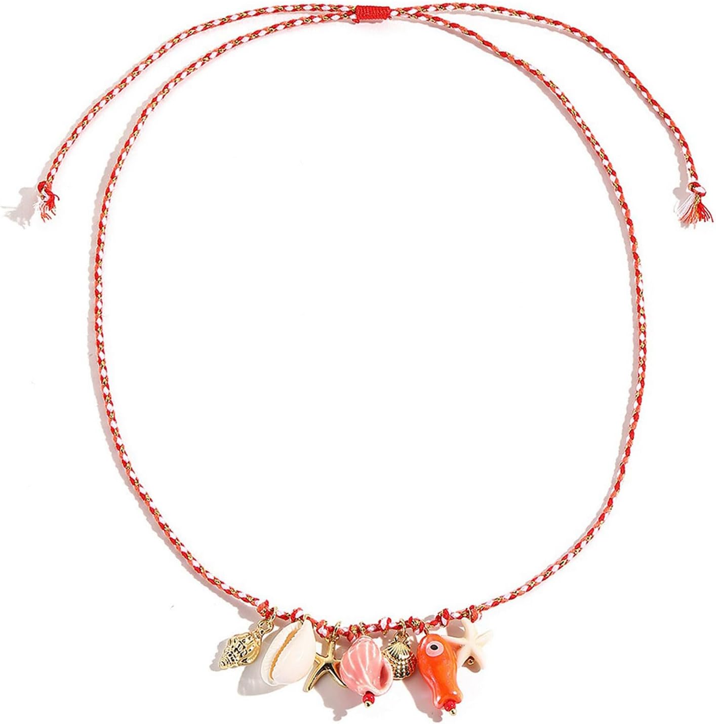 Boho Fish Necklace for Women Shell Starfish Conch Charm Necklace Cute Ocean Beach Animal Necklaces Summer Vacation Jewelry Gifts