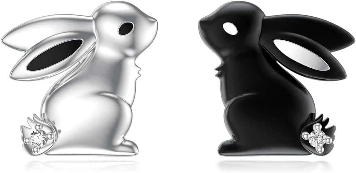 Diamond Bunny Stud Earrings for Women 925 Sterling Silver Black and White Rabbit Earrings Lab Grown Diamond Jewelry Gifts